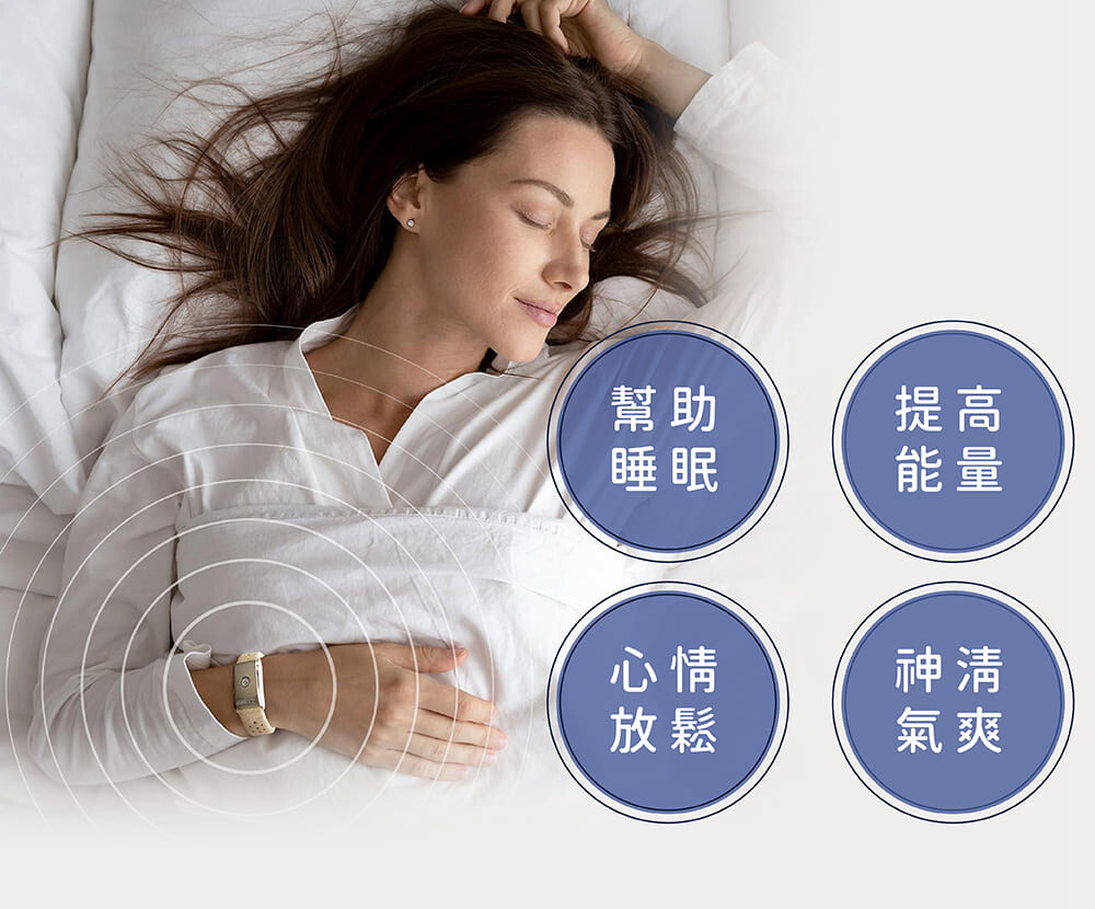 透氣柔軟的超細纖維材質手環,讓肌膚在夜裡也能自在呼吸,提供無比舒適的配戴感受。